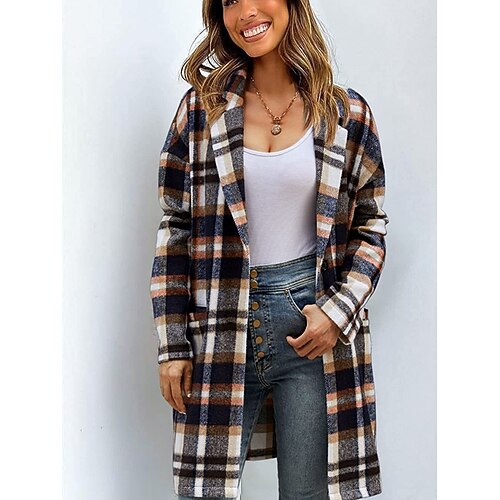 Per donna Giacca Casual Confortevole Traspirante Tasca Bottoni Stampato Casual Plaid Vacanza Streetwear Casuale Abbigliamento quotidiano Monopetto Lungo Collo ripiegato Vestibilità regolare Manica