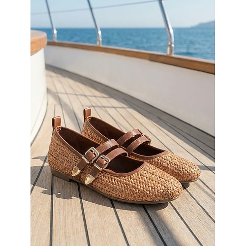 Eleganti ciabatte da donna marroni intrecciate - sandali piatti traforati e traspiranti, ideali per vacanze in crociera di lusso e per rilassarsi sul ponte dello yacht. abbigliamento estivo da resort