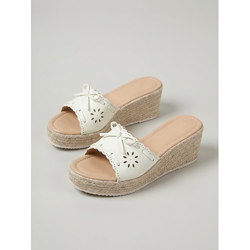 Sandali con zeppa espadrillas da donna azzurri - eleganti ciabatte traforate al laser con dettaglio a fiocco per vacanze in crociera di lusso e feste estive sul ponte. abbigliamento da resort