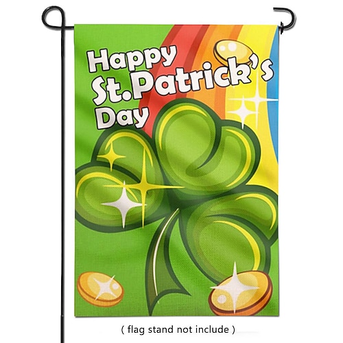 Gartenflagge zum St. Patrick's Day mit Kleeblattmotiv, Koboldmotiv, grün Goldene irische Dekoration, Gartenflagge für die Feier zum St. Patrick's Day.