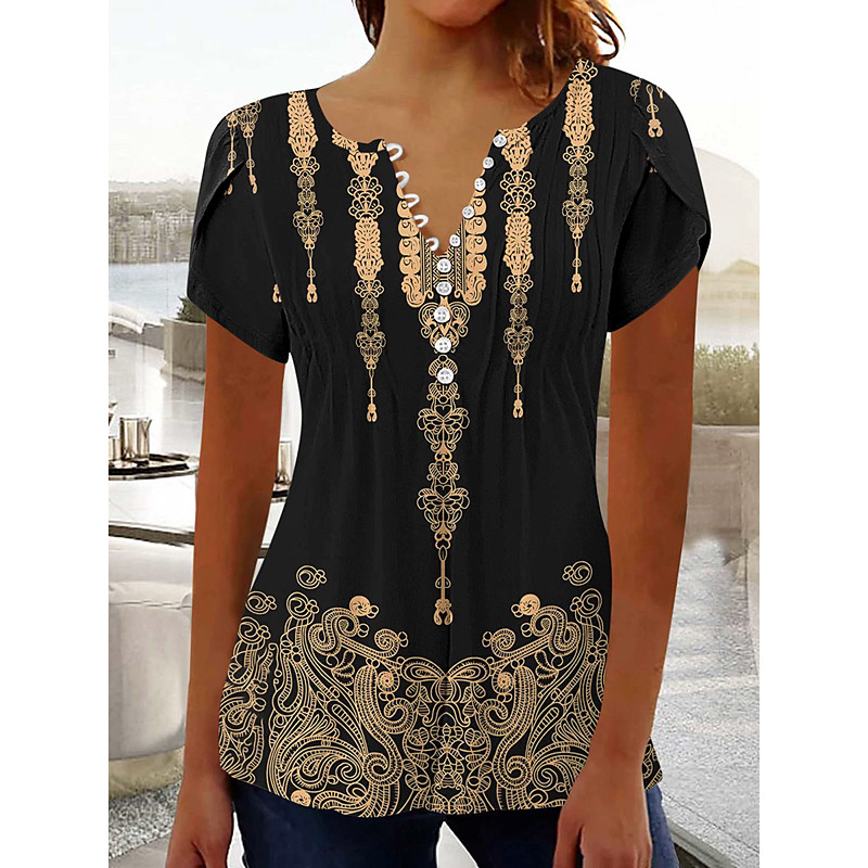 Women's Boho Shirt Ombre Floral Graphic Bohemia Vintage Daily Sleeveless Short Sleeve Notched Neck Regular Tops Daily Holiday Vacation Wear Ruffle Smocked Sage Green Black Red Blue Purple Summer