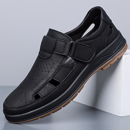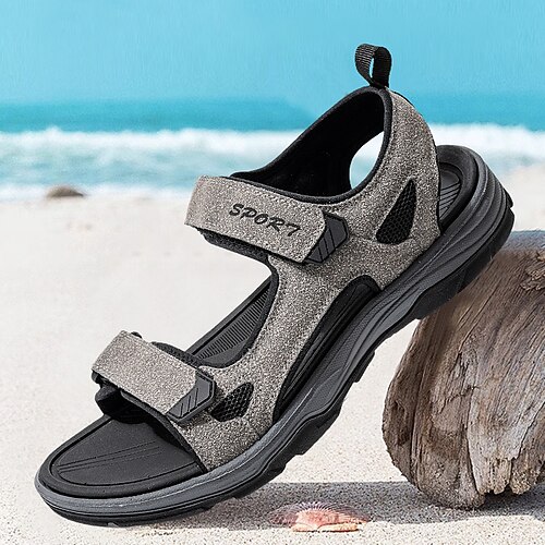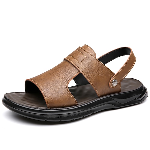 sandali da uomo in similpelle marrone con punta aperta, design regolabile per spiaggia, escursionismo e viaggi estivi
