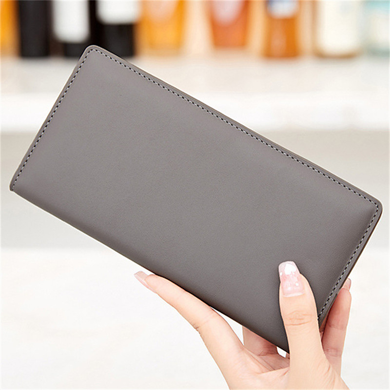 Rfid Blocking Portable Pu Leather Bifold Ultra-thin Long Wallet With Multiple Card Slots Checkbook Credit Card Holders
