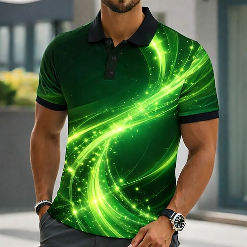Per uomo Astratto Golf Polo Sportivi Manica Corta Magliette polo Camicie con Colletto Casual Athleisure Bottoni Primavera Estate Blu Oro Verde