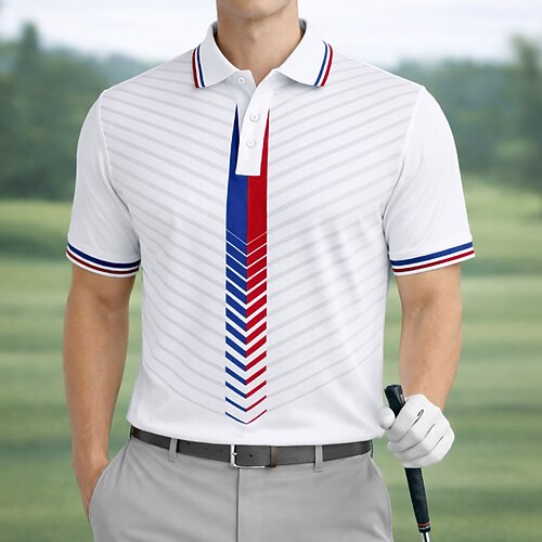 Per uomo Geometrico Golf Polo Sportivi Manica Corta Magliette polo Camicie con Colletto Casual Athleisure Bottoni Estate Primavera Rosso Verde Grigio
