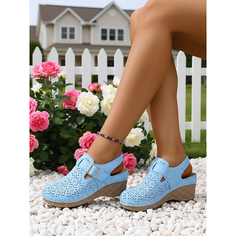 Women's Green Hollow Out Wedge Sandals with Buckle Strap – Breathable Closed Toe Summer Platform Shoes for Walking, Vacation Daily Comfort