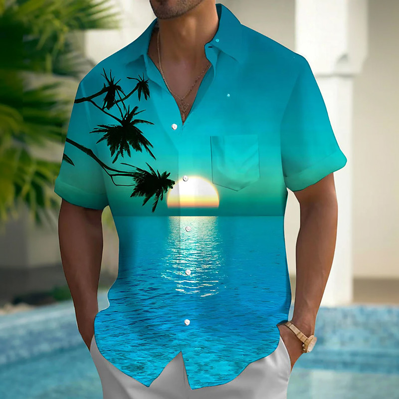 Men's Coconut Tree Landscape Summer Hawaiian Shirt Button Up Shirt Aloha Shirt Short Sleeve Hawaiian Casual Vacation Summer Spring Turndown 3D Print Collared Shirts Front One Pocket Blue Black Purple