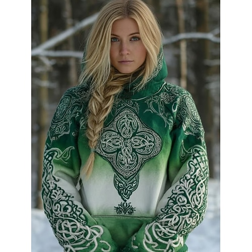 St. Patrick's Day Damen-Pullover-Hoodie mit Grafik im Tribal-Vintage-Stil, lässig, langärmelig, mit Kapuze, reguläres Oberteil, grün, Frühling/Herbst