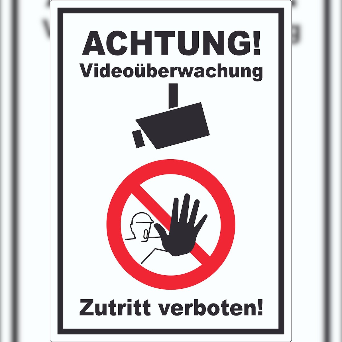 HB-Druck Achtung Videoüberwachung Zutritt verboten Aufkleber A4 (210x297mm)