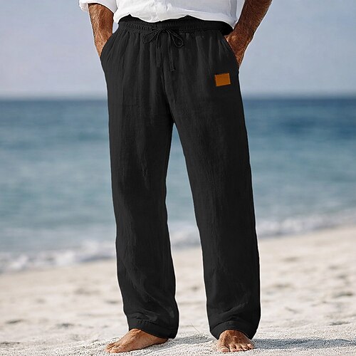 Per uomo Pantaloni di Lino Pantaloni Pantaloni Estivi Gamba Dritta Semplice Comodità Traspirante Lunghezza intera Casuale Quotidiano Spiaggia Vacanza Moda Nero Bianco Inelastico