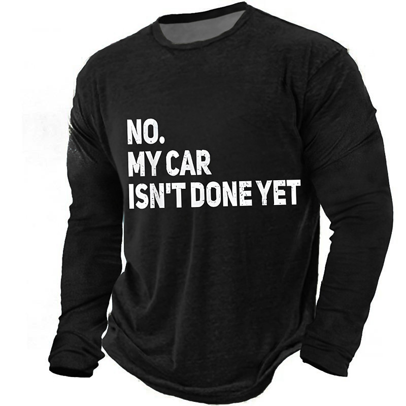 No My Car Isnt Done Yet Funny Car Quote Mens Long Sleeve T Shirt Vintage Mechanic Graphic Tee Olive Green Crew Neck Casual Tops Clothing Apparel S M L XL XXL XXXL