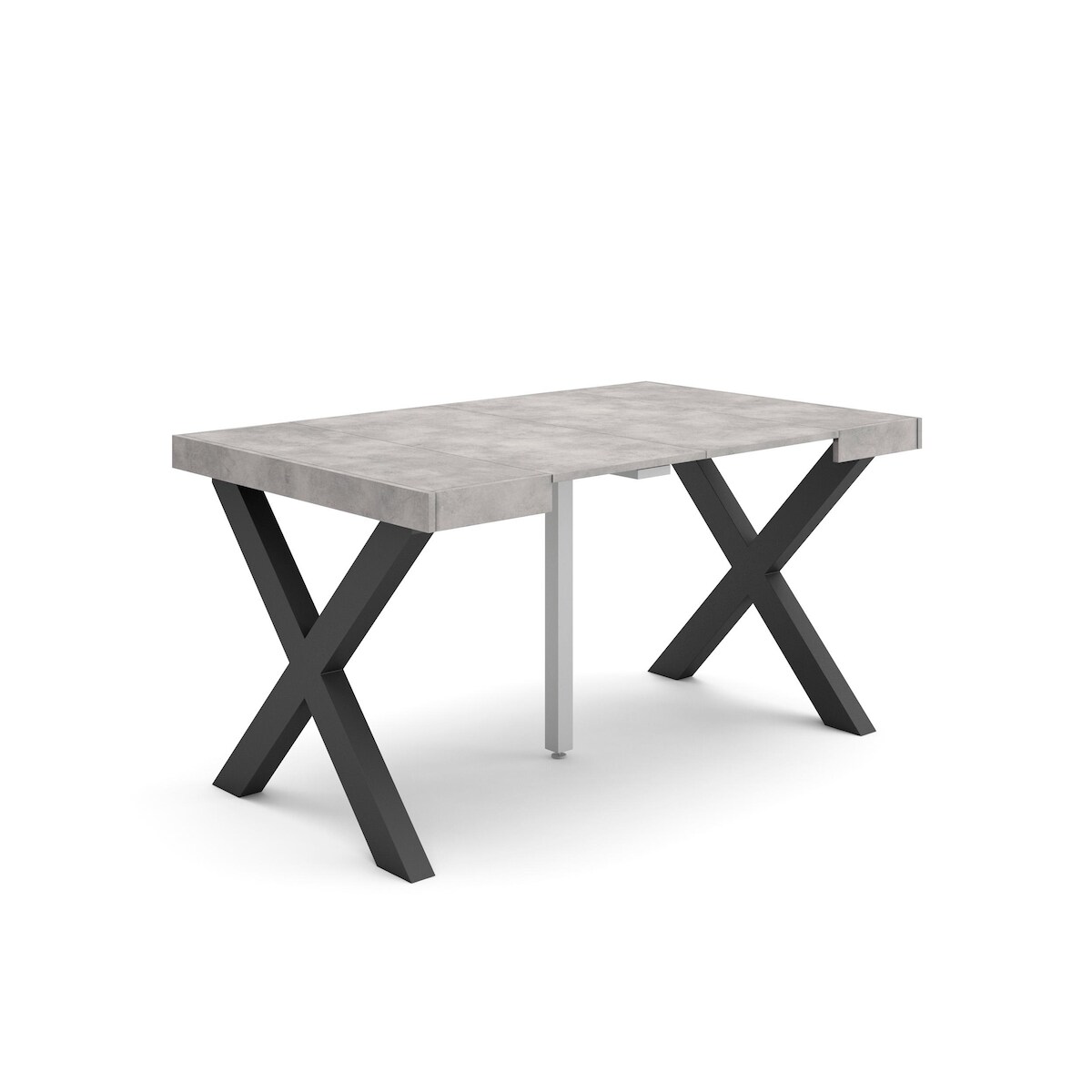 SKRAUT HOME Ausziehbarer Konsolentisch, 140x90x73cm, Für 6 Personen, Holzbeine, Moderner Stil, Zementgrau - 165_19