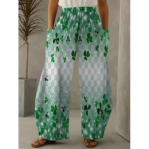 Per donna Gamba larga Chinos Pantaloni Vacanza Stile Boho Casual Lunghezza intera Vita Alta Floreale Coulisse Tasca Fascia Elastica Comodo Comodità Traspirabilità Elasticizzato Vacanza Casuale