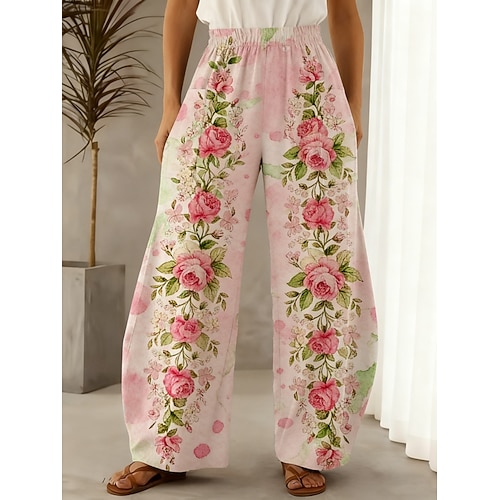 Per donna Gamba larga Pantaloni Moda Streetwear Lunghezza intera Misura del girovita medio Floreale Tasca Elastico in vita Stampato Comodo Traspirabilità Micro-elastico All'aperto Abbigliamento