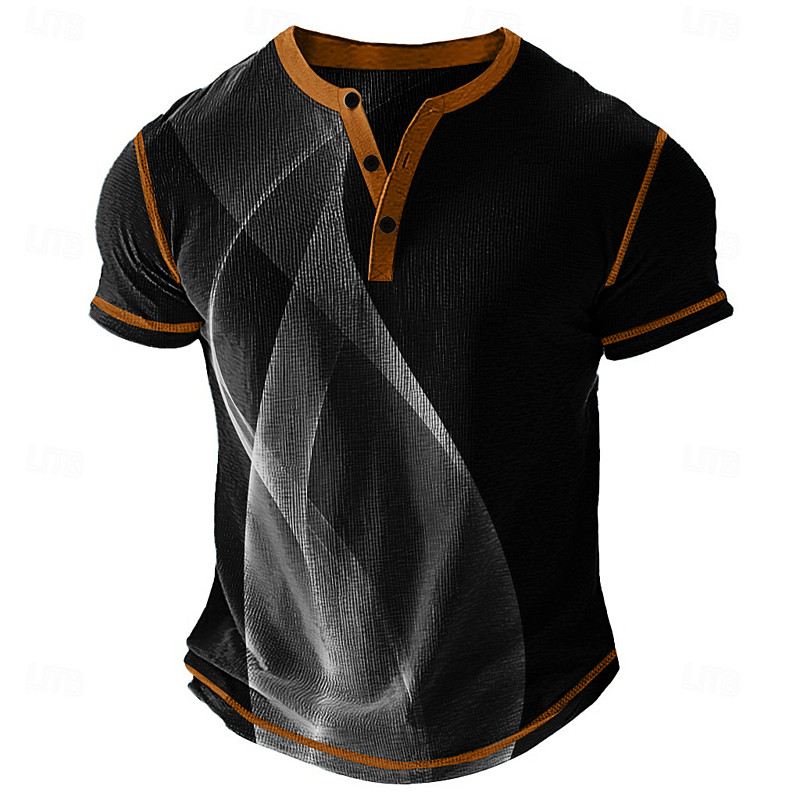 Men's Graphic Abstract Henley Shirt Waffle T Shirt Short Sleeve Daily Retro Vintage Classic Sports Outdoor Casual Holiday Spring Summer All Seasons Blue Yellow Green Red Grey Henley Henley T-Shirt