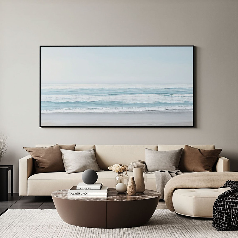 Large Original Sea Painting Blue and Grey Abstract Sea Painting Beach Landscape Abstract Painting Sky Painting Living Room Wall Art