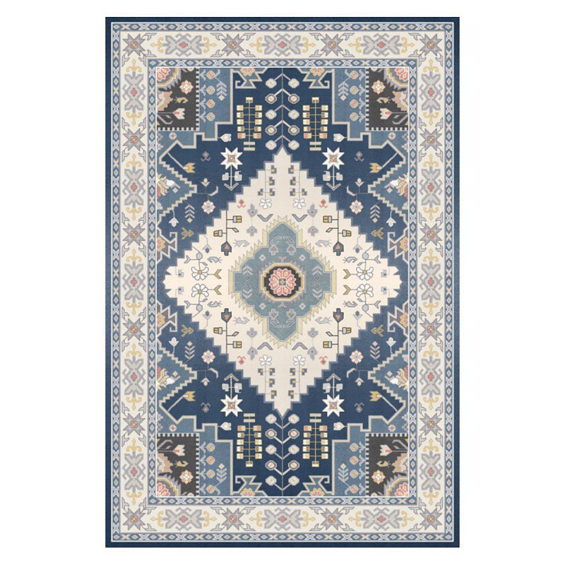 Foldable Area Rug, American-Style Living Room Sofa and Coffee Table Mat, Luxe Vintage Ethnic Floor Mat for Home Decor