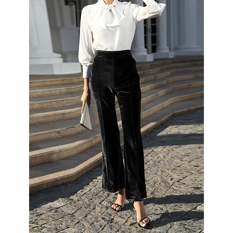 Women's Wide Leg Dress Pants Pants Trousers Fashion Full Length Natural Plain Side Pockets Comfy Breathability Office / Career Business Black White Yellow Pink Spring Fall Regular Fit