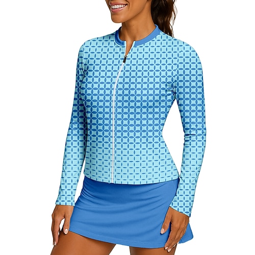 Per donna Geometrico Sfumatura Top Maglietta sportiva Maglia da tennis Manica Lunga Cerniera Floreale UPF50 Resistente ai Raggi UV Alta elasticità Traspirante Pallavolo Tennis Golf Collo alla