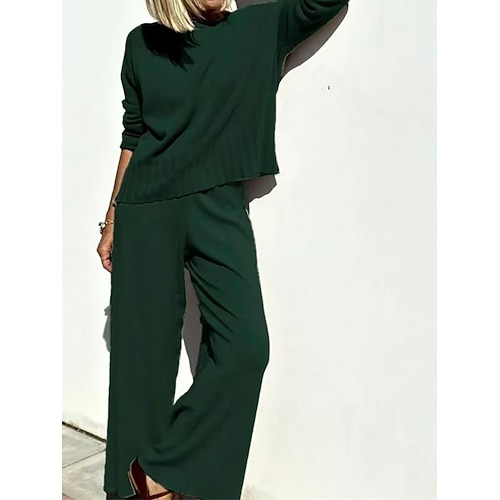 Per donna Blusa Set di Pantaloni Manica Lunga Girocollo Tinta unica Attivo Streetwear Uscire Casual Quotidiano Nero Marrone Verde Autunno Vestibilità regolare