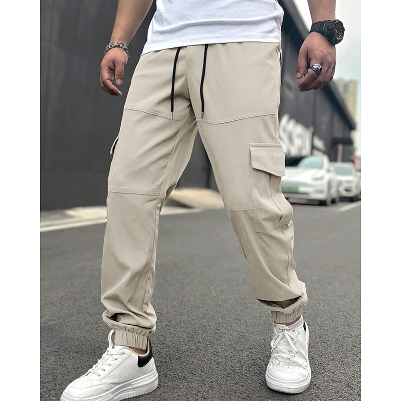 Men's Cargo Pants Trousers Drawstring Elastic Waist Multi Pocket Plain Wearable Outdoor Daily Camping Hiking Fashion Classic Black White