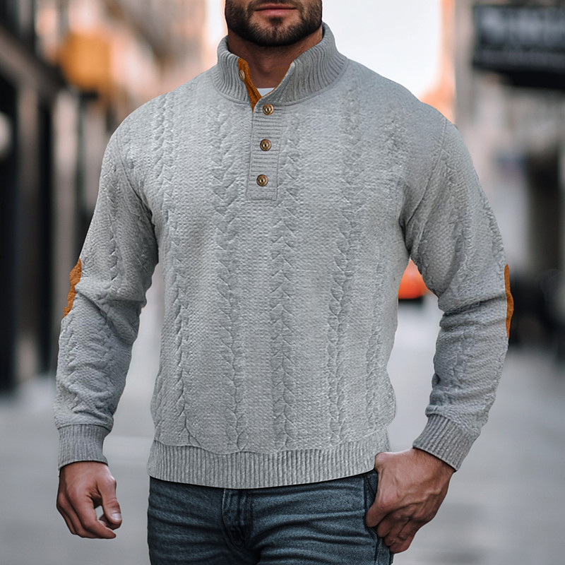Men's Sweatshirt Button Up Hoodie Black Navy Blue Brown Khaki Light Grey Standing Collar Plain Patchwork Embroidery Sports Outdoor Casual Daily Streetwear Cool Sportswear Fall Winter Clothing