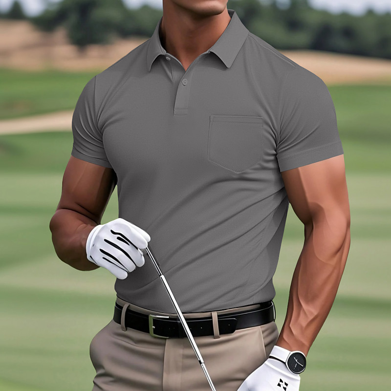 Men's Polo Shirts Golf Shirt Casual Sports Lapel Short Sleeve Fashion Basic Plain Classic Front Pocket Summer Spring Slim Fit Blue Orange Green Light Grey Dark Grey Polo Shirts