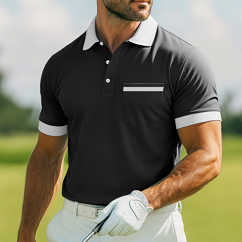 Men's Golf Shirt Pique Polo Shirt Work Casual Lapel Ribbed Polo Collar Short Sleeve Basic Modern Color Block Pocket Summer Spring Regular Fit Black White Light Blue Dark Blue Golf Shirt