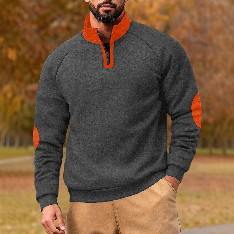 Men's Sweatshirt Pullover Quarter Zip Sweatshirt Apricot Black Navy Blue Khaki Light Grey Standing Collar Plain Patchwork Color Block Sports Outdoor Casual Daily Streetwear Cool Sportswear Spring