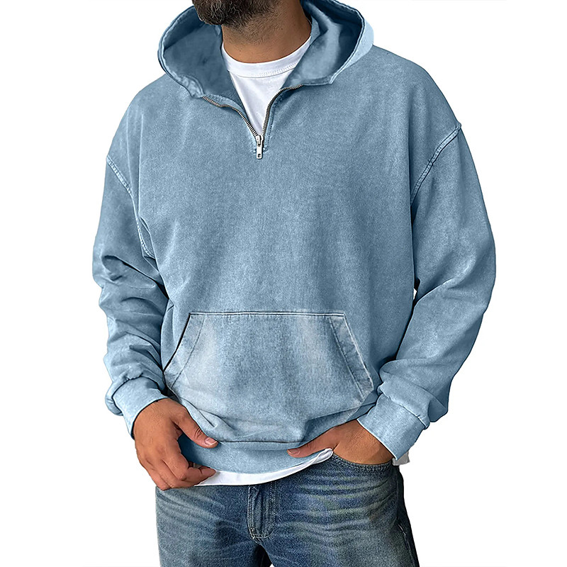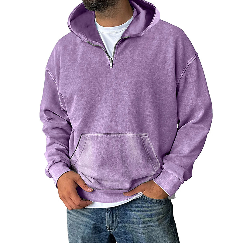 Men's Hoodie Pullover Hoodie Sweatshirt Quarter Zip Hoodie Apricot Wine Red Black Light Green Navy Blue Hooded Plain Kangaroo Pocket Casual Daily Sports Outdoor Vintage Streetwear Cool Spring