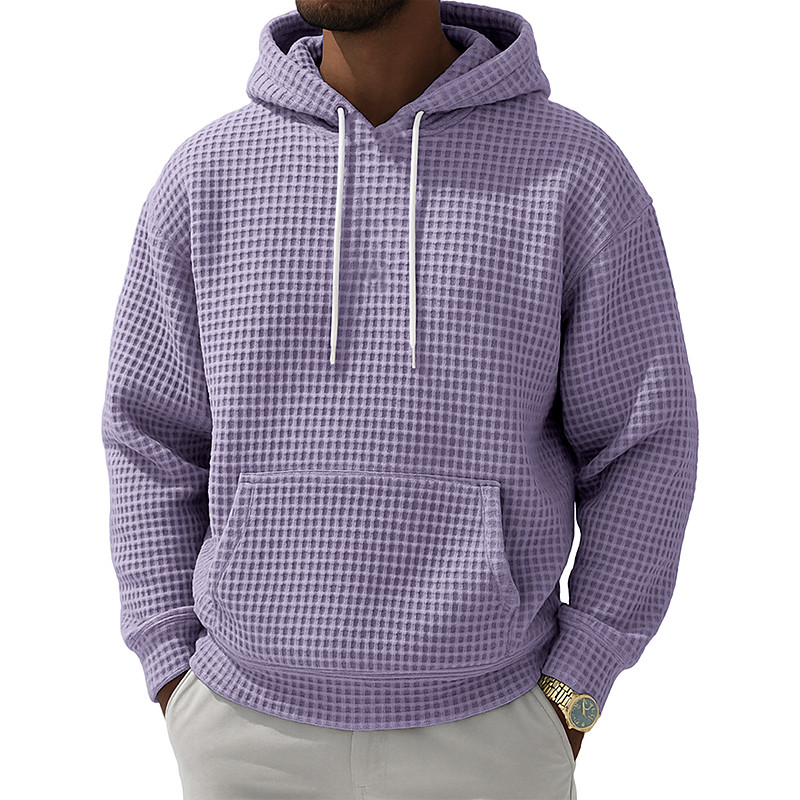 Men's Hoodie Waffle Hoodies Pullover Black White Light Green Pink Navy Blue Hooded Plain Kangaroo Pocket Textured Casual Daily Sports Outdoor Streetwear Cool Sportswear Spring Fall Clothing