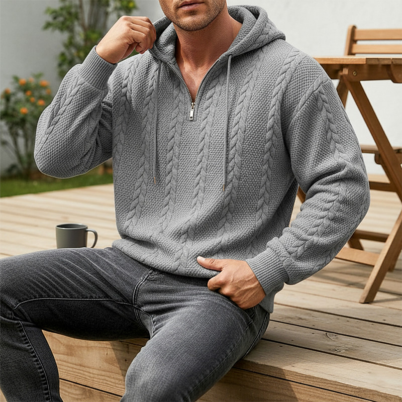 Men's Jacquard Pullover Hoodie Sweatshirt Quarter Zip Hoodie Apricot Black White Light Green Wine Hooded Plain Zip Up Textured Casual Daily Sports Outdoor Streetwear Cool Sportswear Fall Spring