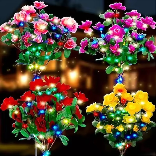 2 Stück neue wasserdichte LED-Solar-Azaleenblütenleuchten für den Außenbereich, geeignet für Rasen, Terrasse, Gartenweg und als dekorative Beleuchtung.