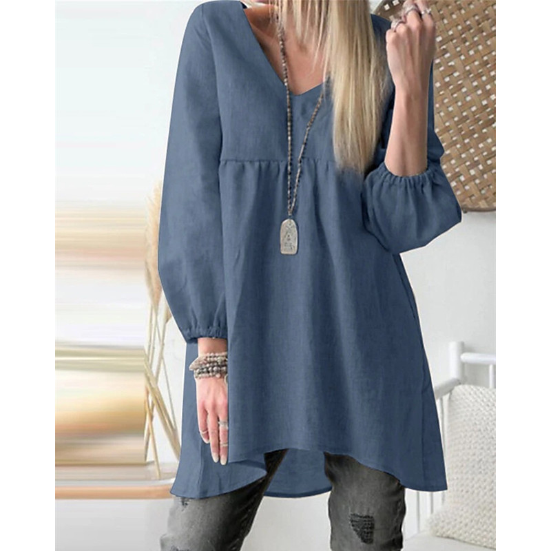 Women's Shirt Cotton Linen Shirts Linen Shirt Plain Daily Stylish Basic 3/4 Length Sleeve Lantern Sleeve V Neck Regular Tops Daily Work Holiday Blue Black Khaki Spring Fall