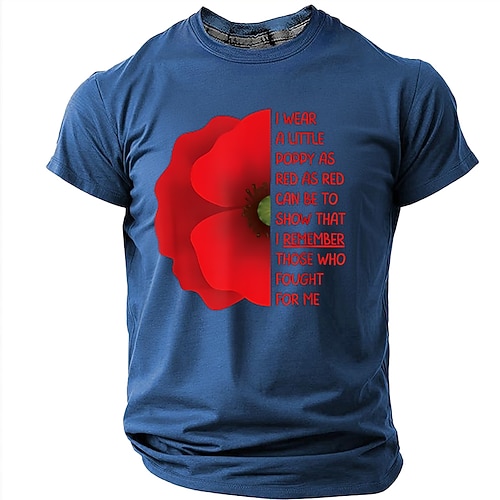 Gedenktag, Remembrance Day – Ich trage ein kleines Mohnblumen-T-Shirt, so rot wie Rot nur sein kann. Patriotisches Herren-T-Shirt mit Grafik, Kurzarm, Designer-Kleidung, Größen S, M, L, XL, XXL, XXXL