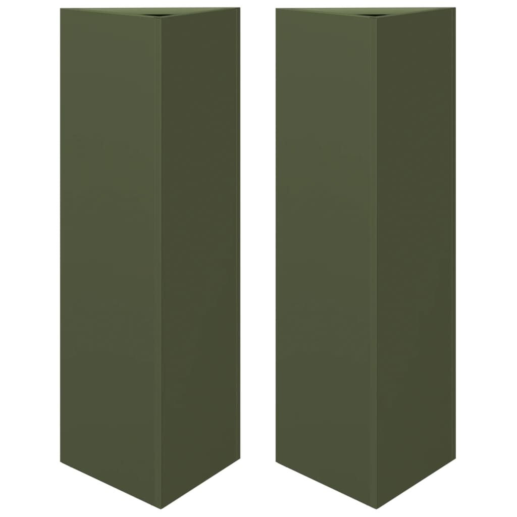 vidaXL Pflanzkübel 2 Stk. Olivgrün Dreieckig 30x26x75 cm Stahl