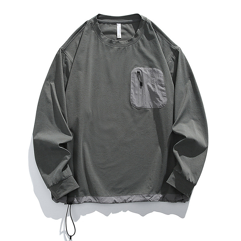 Men's Hiking Shirt Hiking top Long Sleeve Crew Neck Top Outdoor UV Sun Protection Quick Dry Polyester Dark Grey Black Light Grey Tennis Golf Running