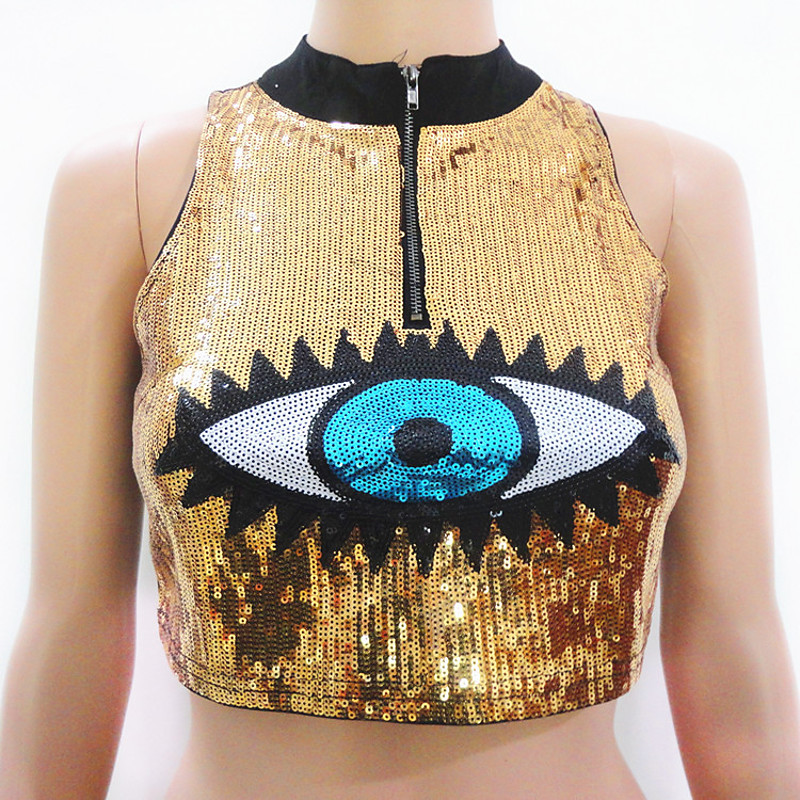 Women's Sequin Tank Tops Crop Top for Festive Club Carnival Tank Tops Fashion Summer Bellyless Pin-Up Shirt Vest