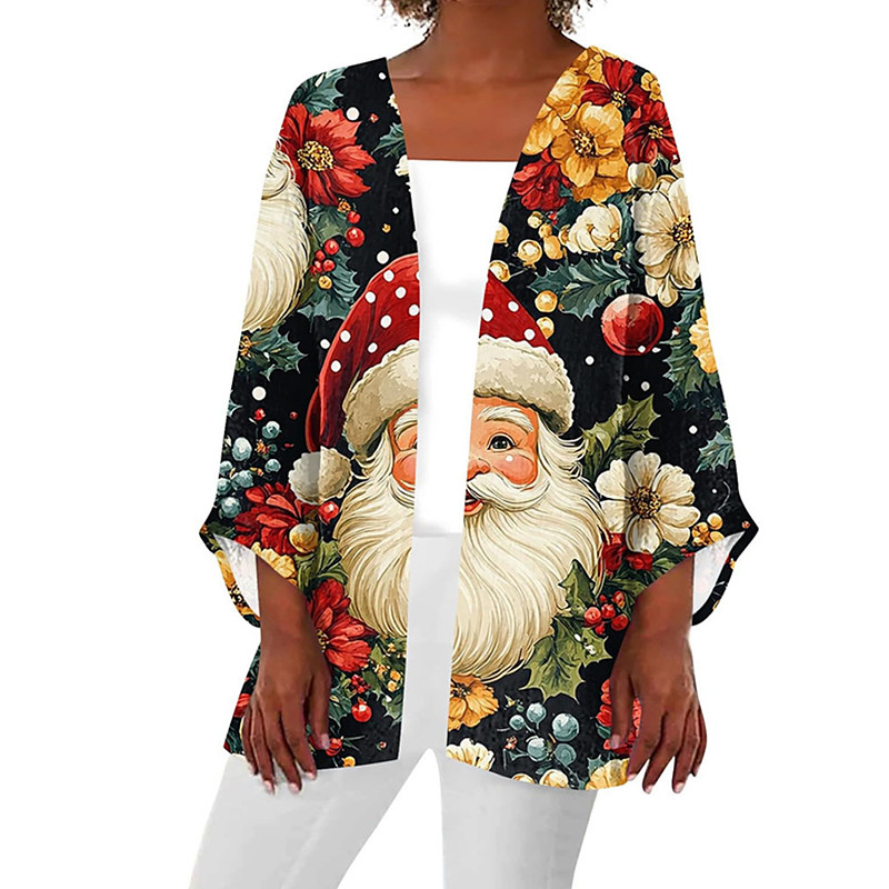 Christmas Women's Shirt Blouse Dressy Tops Graphic Santa Claus Christmas Tree Elegant Vintage Cute Long Sleeve Asymmetrical Regular Tops Daily Work Holiday Ruched Print Draped Black White Wine Red