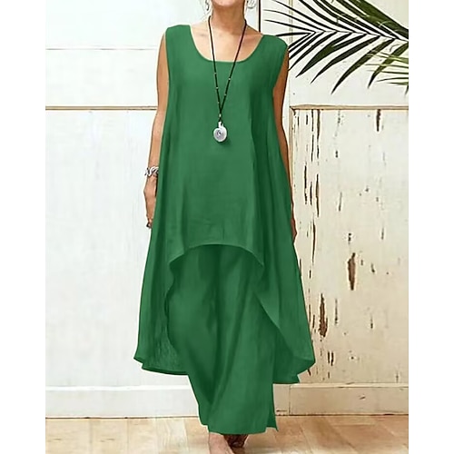 Per donna Moda Blusa Set di Pantaloni Senza Maniche Girocollo Tinta unica Vacanza Casual Quotidiano Nero Azzurro cielo Viola Estate Vestibilità regolare