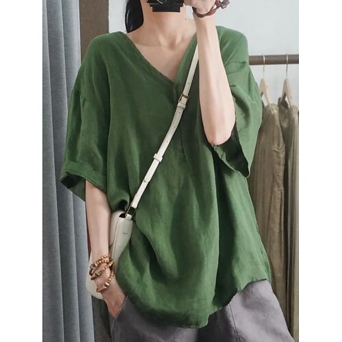 Per donna Blusa Tinta unica Elegante Casual Manica 3/4 Scollo a V Top Regolari Quotidiano Nero Bianco Rosa Verde Albicocca Estate Primavera