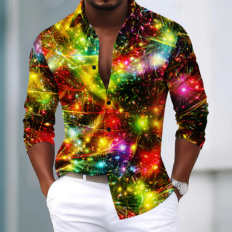Christmas Men's Sparkling Glitter Christmas Light Shirt Satin Shirt Dress Shirt Long Sleeve Fashion Casual Party Holiday Summer Spring Fall Turndown 3D Print Button Up Shirts Blue Yellow Purple Green