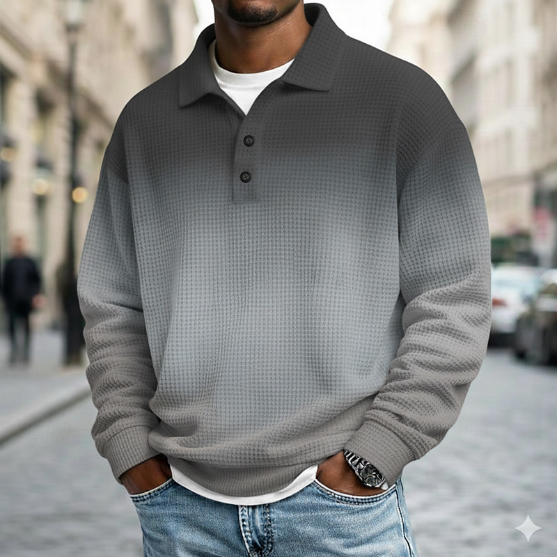 Men's Gradient Ramp Waffle Polo Shirts Long Sleeve Polo Shirts Lapel Sportswear Casual School Athleisure Daily Wear 3D Print Spring Fall Winter Blue Purple Light Blue