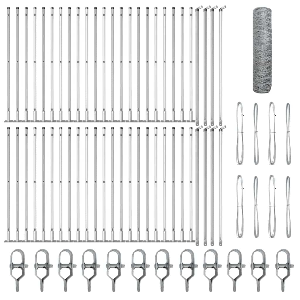 vidaXL Zaunpfosten Silber 25 x 1,2 m (13 mm Maschen) Stahl
