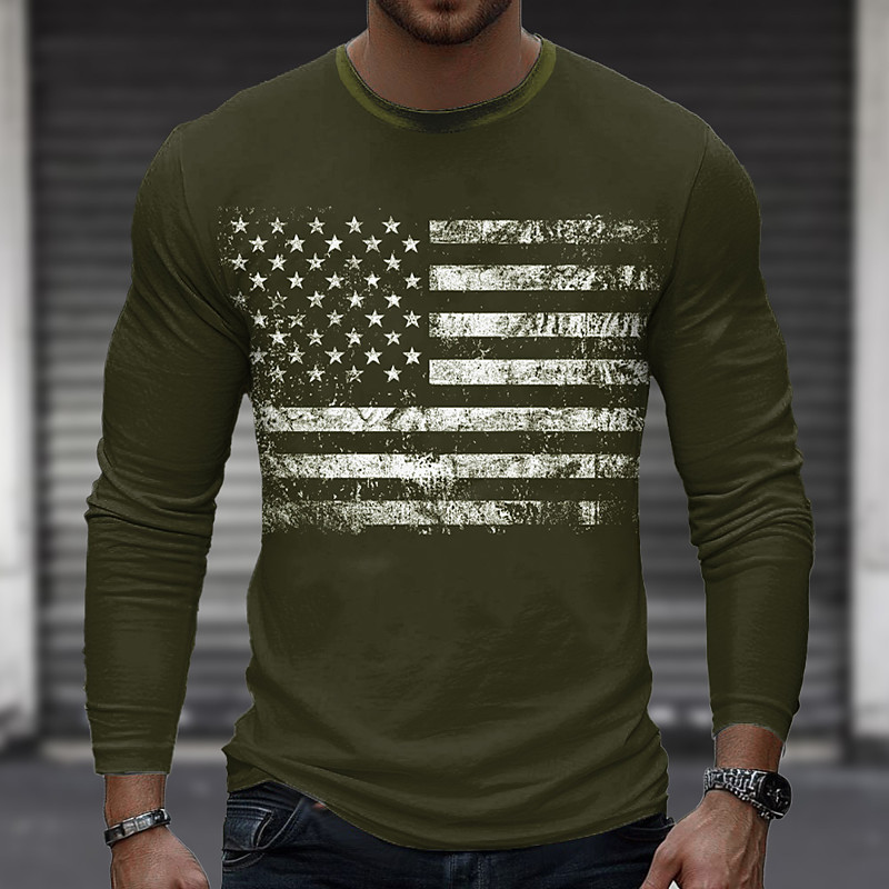 Men's American US Flag T Shirt Long Sleeve T shirt 3D Print Crew Neck Shirt Fashion Outdoor Street Sports Outdoor Black White Blue Summer Spring Clothing Apparel S M L XL XXL XXXL