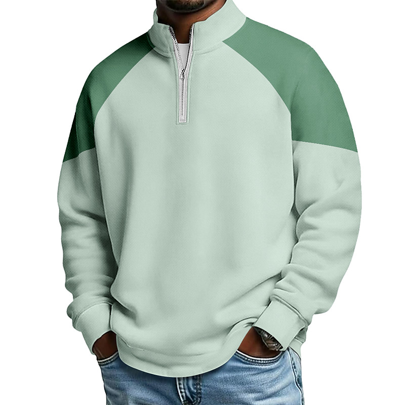 Men's Color Block Zip Polo Shirts Long Sleeve Polo Shirts Grandad Collar Casual School Athleisure Holiday Daily Wear 3D Print Quarter Zip Polo Spring Fall Blue White Green