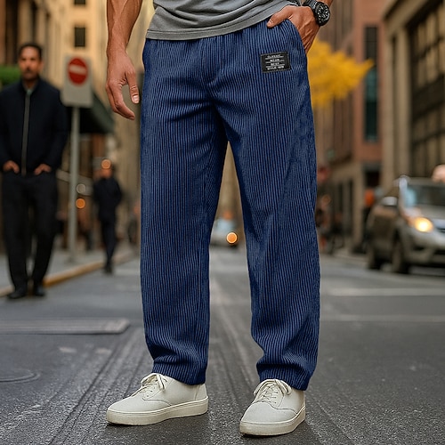 Per uomo Pantaloni Pantaloni in velluto a coste Pantaloni Larghi Pantaloni casual Pantaloni della tuta a gamba dritta Coulisse Elastico in vita Tinta unica Comodità Lunghezza intera All'aperto
