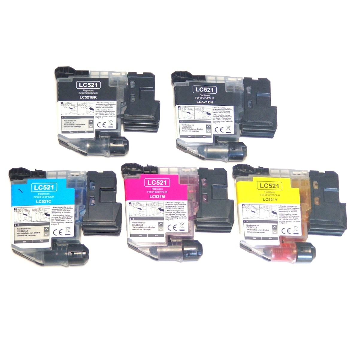 5x Tintenpatronen kompatibel f. Brother DCP-J 1313DW - ersetzt Brother LC-521 Bk / C / M / Y