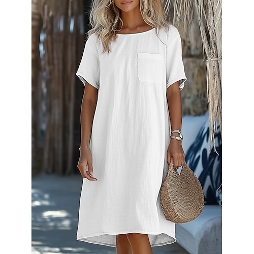 Per donna Abito al ginocchio Misto cotone Vestito Casual Abito in cotone Vestito T-Shirt Moda Moderno Quotidiano Vacanza Uscire Vestibilità comoda Semplice Manica Corta Girocollo Blu Bianco Rosa Verde