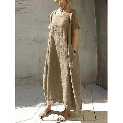 Per donna Abito maxi Abito a trapezio Abito Estivo Casual Vestibilità comoda Semplice Manica Corta Scollo a V Blu Giallo Cachi Estate Primavera